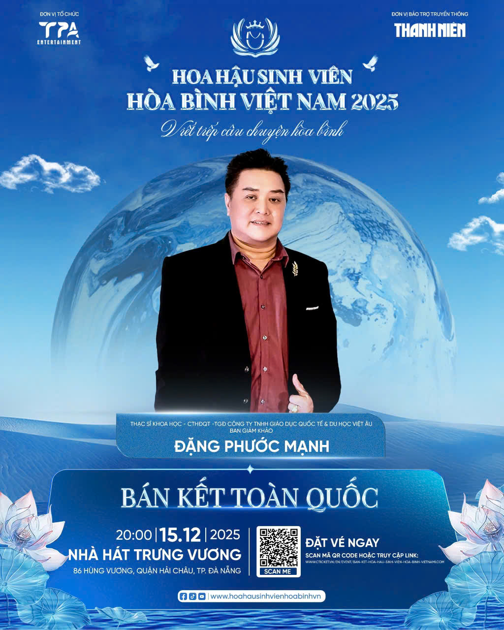 Bán kết Hoa hậu Sinh viên Hòa Bình Việt Nam 2025 hứa hẹn mang đến một đêm thi ấn tượng, nơi sắc đẹp, trí tuệ và bản lĩnh của các thí sinh được đánh giá bởi dàn Ban Giám Khảo uy tín, giàu kinh nghiệm trong các lĩnh vực nghệ thuật – truyền thông – giáo dục – cộng đồng.