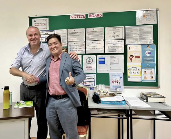 Minh chứng cho sự tận tâm và trách nhiệm, ThS. Đặng Phước Mạnh – Chủ tịch HĐQT Việt Âu đã có chuyến công tác trực tiếp tại Đảo quốc Sư tử. Tại đây, đại diện Việt Âu đã có buổi làm việc chính thức và cái bắt tay chiến lược cùng Hiệu trưởng Kelvin Lin và Hiệu phó Carey Tai của DIMENSIONS International College.